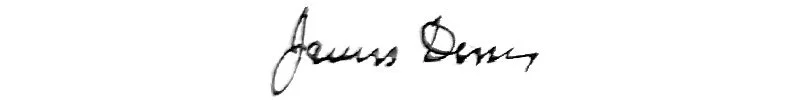 Signature of “Big Jim” Denis, sourced from a petition to resist the move from Old Town and The Flat into the surveyed town.