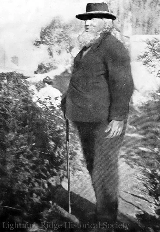 Article: Research by Russell Gawthorpe and Leisa Carney, edited by Russell Gawthorpe. LRHS research compiled by Len Cram and Barbara Moritz. Sources: The Lightning Ridge Book, Stuart Lloyd, 1967, pp. 91, 130; Lightning Ridge: The Land of Black Opals, Ion L. Idriess, 1940, chapter XXXI; Walgett Spectator, 15 January 1900, 12 October 1907, 9 November 1907, 6 August 1909, 21 July 1911; They Struck Opal!, E. F. Murphy, 1948, p. 148; ‘Jock’, Gilgandra Weekly, 14 November 1929; ‘Walgett’, The Maitland Mercury and Hunter River General Advertiser, 28 April 1887, p. 3; ‘Miscellaneous Items’, The Maitland Mercury and Hunter River General Advertiser, 16 September 1884, p. 2; ‘Figaro’s At Home’, Queensland Figaro, 17 January 1885, p. 26; ‘Northern Notes’, Newcastle Morning Herald and Miners’ Advocate, 17 December 1886, p. 6.