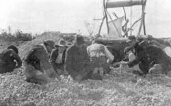 New Town and the Cemetery were surveyed on land least likely to be opal bearing. Hence Wallangulla, where the school and post office had already opened, became known as Old Town. Tanksinker Fred Dowdle was working. E. F. “Ted” Murphy relocated from White Cliffs to become a resident opal buyer. 125 men on the field.