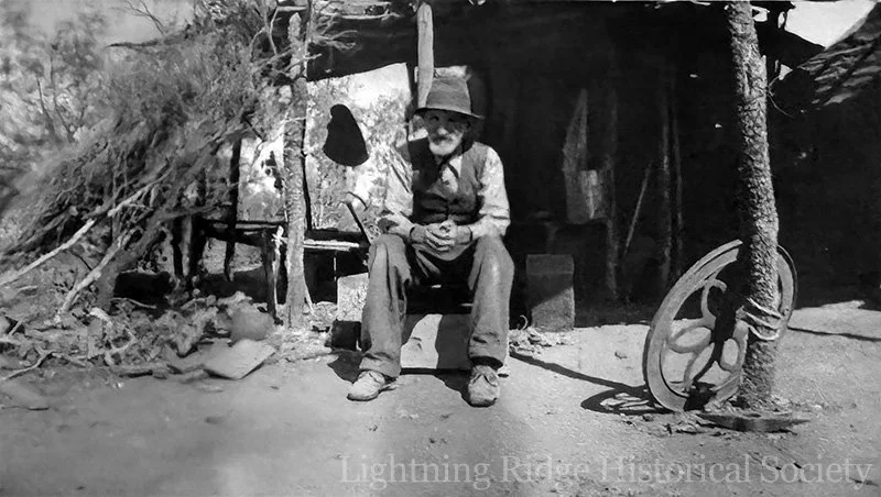 Surface opal is also found by Florence Murray and her young son, and by Jack Murray while he is setting rabbit traps. According to Mick Canfell via Frank Leechman, Jack got fired from his job for digging up the land rather than looking after it. Jack Murray is the first opal miner at Lightning Ridge, as per The Opal Book by Frank Leechman, 1961. Charlie Gibson prospects for opal on the Nebea Ridges.