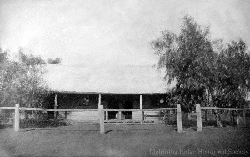 Third post office built by Jim Alderslade (later Dawson’s Store, Maude’s Cafe, Outback Kitchen). Ray Hinds was postmaster. Spicer's or Graham Bros Cottage built by Bert Spicer when he struck opal with Laurie Hart, hence Hart’s & Spicer’s field of today.