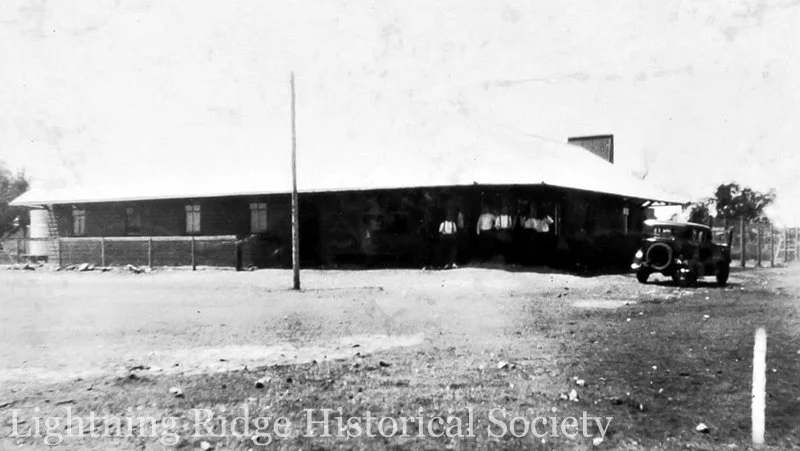 World War II drew miners into service and the opal fields were quiet. The police station closed in 1944. The Cottage Hospital struggled to keep going on community funds. The school dwindled to fifty children. Bert Cooper and family arrived 1943. Artie Dawson moved in from Llanillo Station about 1946, and he took over Reeves Store, next to the Imperial Hotel. He delivered groceries on the field. Les Wharton took over the third post office and general store.