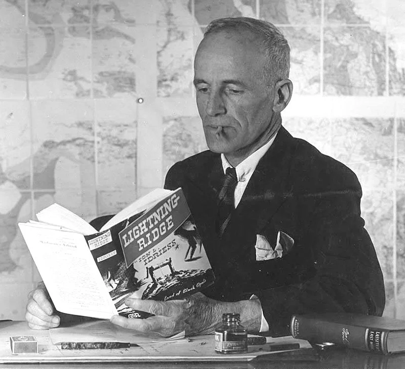 Ion Llewellyn Idriess, known as “Jack” while on the road, was a prolific Australian author who published some 50 books in a span of 43 years. Idriess was born in Waverley, Sydney, in 1889 and visited Lightning Ridge in 1909-1910, staying for about two years.
