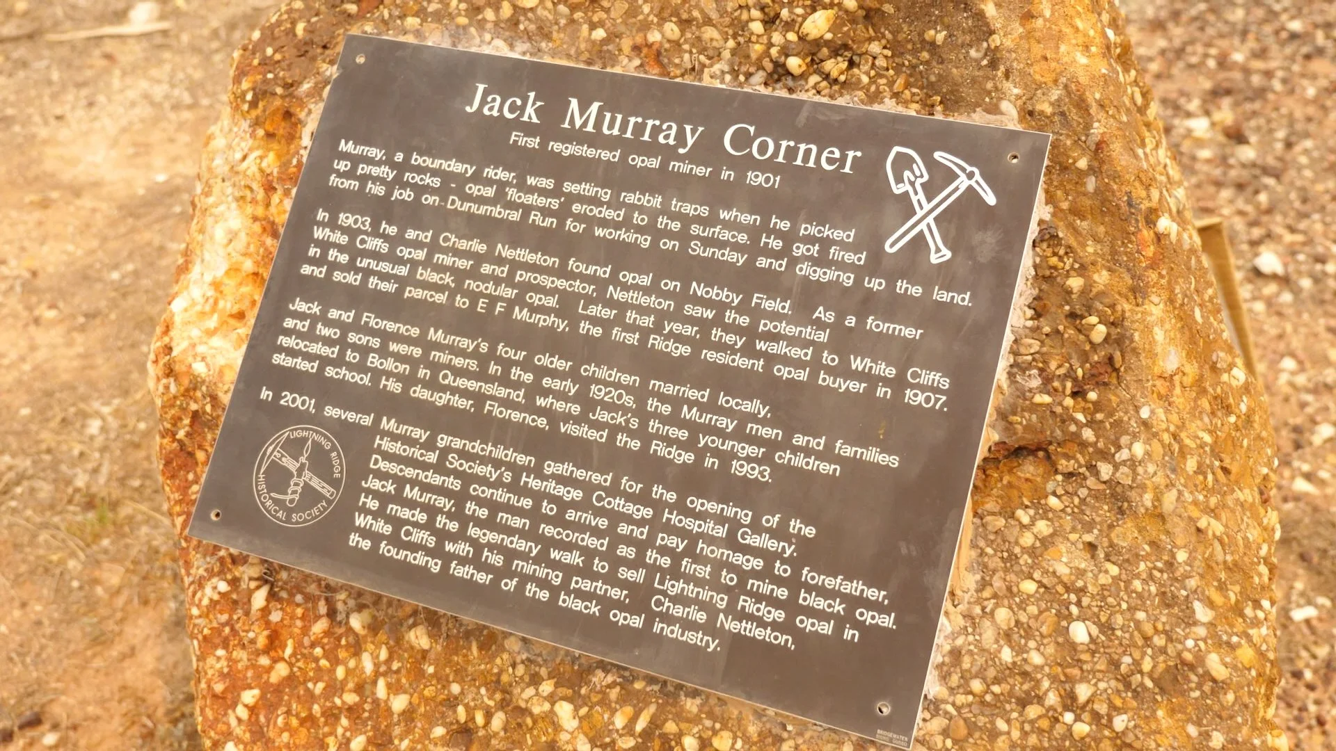 Jack Murray's contribution to opal history is commemorated at Jack Murray Corner in Morilla Street, which visitors see on the way into town.
