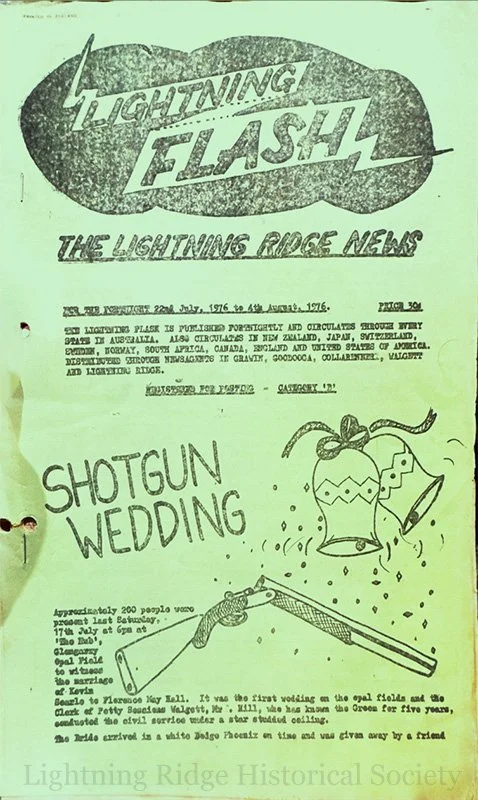 Article: Research by Russell Gawthorpe and Leisa Carney, edited by Russell Gawthorpe. LRHS research compiled by Len Cram and Barbara Moritz. Sources: Lightning Flash Newspaper, 11 May 1972, 22 September, 1979, 27 September 1979; Lightning Ridge - The Home of the Black Opal: Unique to the World, Gan Bruce, 1983, p. 182.