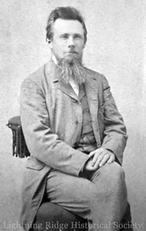 Article: Research by Russell Gawthorpe and Leisa Carney, edited by Russell Gawthorpe. LRHS research compiled by Len Cram and Barbara Moritz. Sources: Marriage certificate, Australian Marriage Index, ref. 3767/1882; Frances Emily Mary Moore diaries, 1880-1922, reference 9641502, SLNSW, 17 June 1885; 17 April 1886; 27 April 1886, 28 June 1903; New South Wales Collector’s Book, Census 1901, p. 6, line 2; Walgett Spectator, 14 March 1903; ‘Mining in the State’, The Sydney Morning Herald, 22 October 1903, p. 9; J.M. Landers, Walgett Spectator, 10 November 1921; J. Drayton, ‘Real Opals in the Ring’, Smith’s Weekly, 26 May 1923, p. 29; ‘Court of the Flame Queen’, Daily Standard, 14 June 1935, p. 4; ‘Pioneer of Outback Tells of Roaring Days of White Cliffs Opal’, Barrier Miner, 24 April 1946, p. 3; ‘New South Wales Opal Fields’, Australian Museum Magazine, 15 September 1953, vol. 11, no. 3, p. 86; The Occurrence of Opal at Lightning Ridge and Grawin with Geological Notes on County Finch, J.W. Whiting & R.E. Relph, 1958, p. 12; The Opal Book, Frank Leechman, 1961, pp. 70, 72; The Lightning Ridge Book, Stuart Lloyd, 1967, pp. 11, 88-89, 138; Beautiful Lightning Ridge and History, Len Cram, 1996, pp. 3, 5; A Journey With Colour: A History of Lightning Ridge Opal 1873-2003, Len Cram, 2003, pp. 12-13, 15-16.