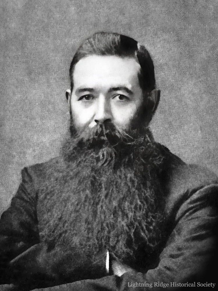 “On 11 November, 1903, Charlie Nettleton, prospector of the Lightning Ridge opal field, came to me at White Cliffs with a parcel of opal of an entirely new variety-very dark, although it did have some good colour. He had sent 100 ounces to Sydney, and been offered 10s. for it, its being considered too dark for commercial value. Personally, I thought the stuff had possibilities, and wanted Mr Wollaston to see it, so I bought it.”
