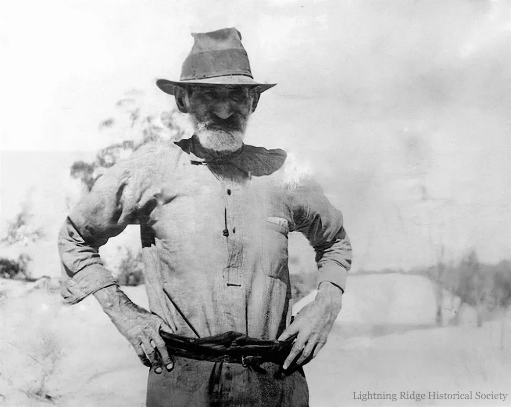 The photographs as shown in Stuart Lloyd’s The Lightning Ridge Book. The top photograph is actually Jack Gray, shearer from Walgett. The bottom photograph is Charlie Nettleton.