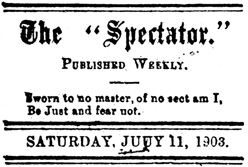 Despite a fire that destroyed its premises in 1903, the Spectator continued. During the 1920s and 30s, it published some of the earliest written records of the Lightning Ridge opal fields, many of them under the pseudonym “Old Chum.”