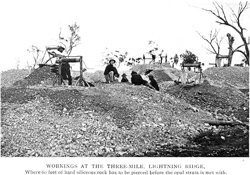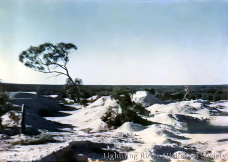 Article: Research by Russell Gawthorpe and Leisa Carney, edited by Russell Gawthorpe. LRHS research compiled by Len Cram and Barbara Moritz. Sources: Lightning Ridge: The Land of Black Opals, Ion L. Idriess, 1940, chapter XIV; The Lightning Ridge Book, Stuart Lloyd, 1967, pp. 57-60; Lightning Ridge - The Home of the Black Opal: Unique to the World, Gan Bruce, 1983, pp. 68-70; The Occurrence of Opal at Lightning Ridge and Grawin, with Geological Notes on County Finch, J. W Whiting & R. E. Relph, 1958, p. 10; Walgett Spectator, 24 November 1921, 1 December 1921, 28 October 1931; Discover Opals: Before and Beyond 2000 with Surface Indications, Stephen Aracic, 1996, p. 143.
